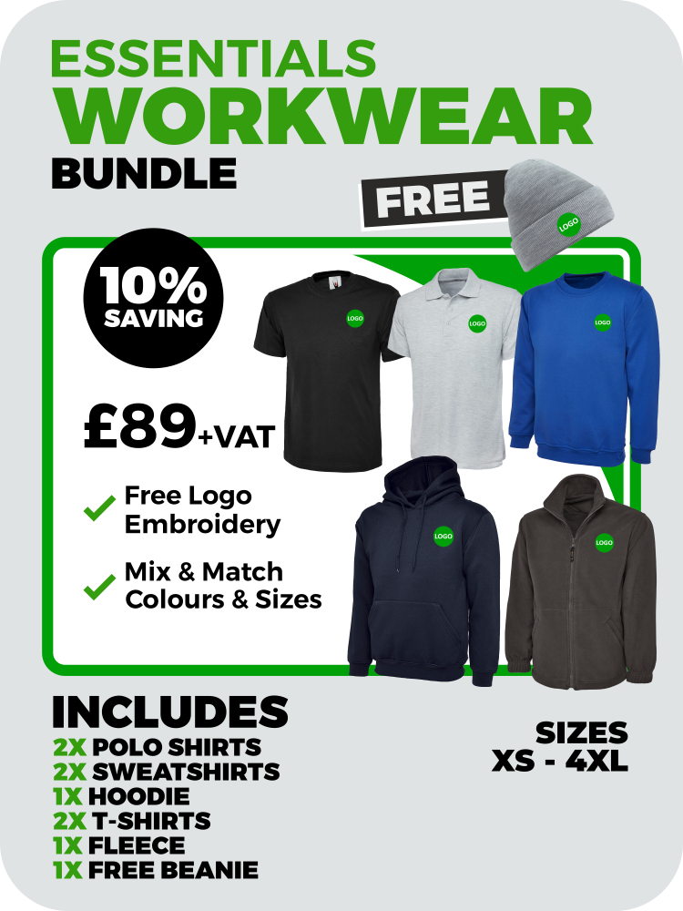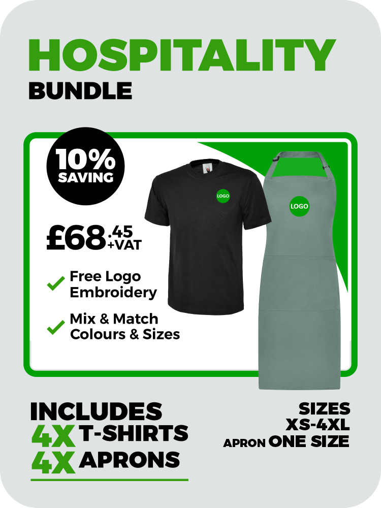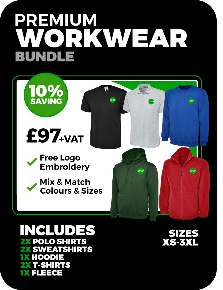 Featuring your free embroidered company logo, our Uniform & Workwear Bundles are suitable for businesses of all sizes and sectors, including trades, hospitality, healthcare, retail, offices, community groups, and much more.